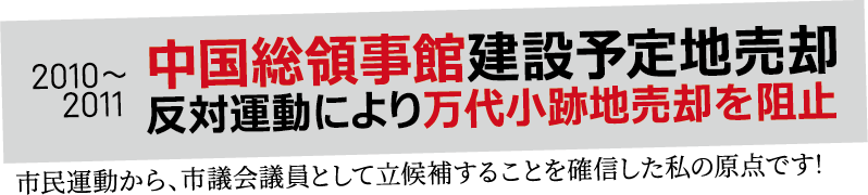 中国総領事館の市有地売却を阻止多くの皆様の力が結集され市民運動が私を政治の道に導いた